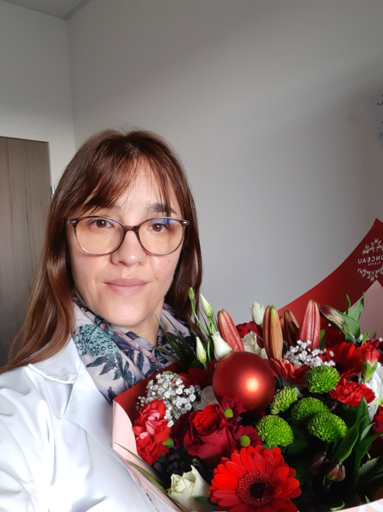Suite au premier confinement, j’ai du retrouver un poste d’assistante sociale pour pallier à la situation. C’est l’ICO Paul Papin qui m’a ouvert ses portes le 14/05/2020 pour un remplacement à mi-temps de quelques mois. C’est avec tristesse que je quitte la belle équipe des soins de support ! Merci à vous pour ce magnifique bouquet !